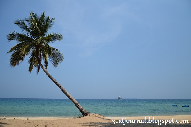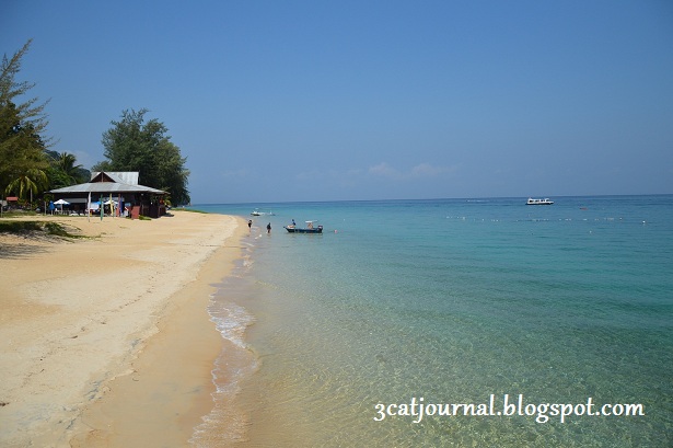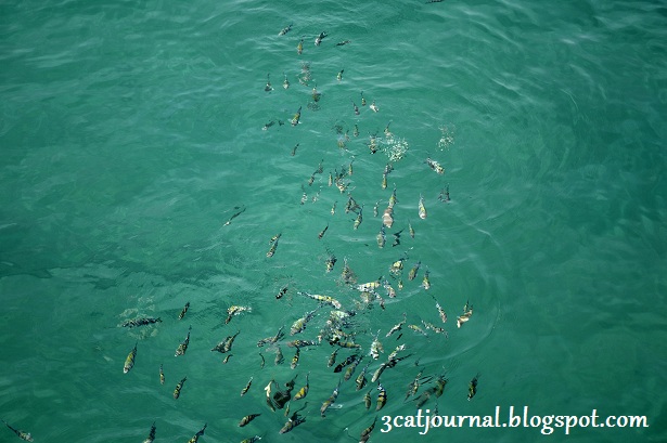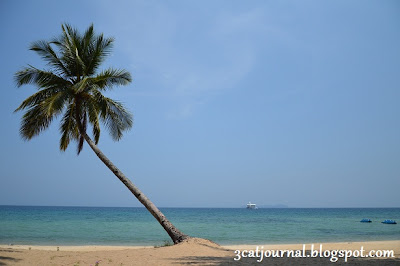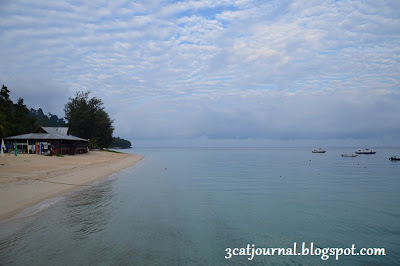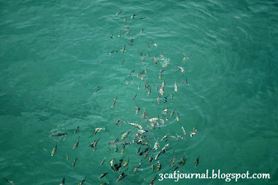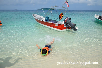 看! 喵仔就迫不急待地戴上自备的潜水用具先来个热身,而身为人母的喵喵就顾着拍照,冷不防被沙蝇(Sand fly)吻了几口也浑然不觉。