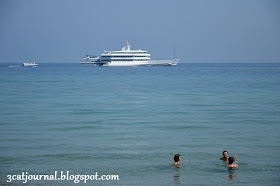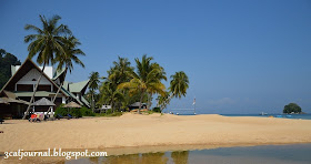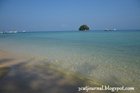 看! 喵仔就迫不急待地戴上自备的潜水用具先来个热身,而身为人母的喵喵就顾着拍照,冷不防被沙蝇(Sand fly)吻了几口也浑然不觉。