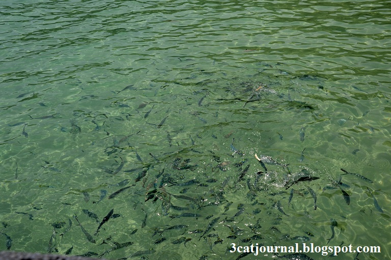 途中往长廊下一望,海水清澈见底,可惜仍然没什么看头,不像热浪岛的海洋公园般尽是珊瑚及无数的海洋生物。丢下的面包只迎来一大群灰黑色的鱼儿,蛮失望的。
