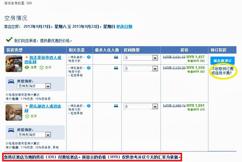 像图一上角有声明“没有信用卡亦可预订客房”,即表示 Booking.com 不会要求客户提供任何信用卡资料。但如果客户预订了又没出现,哪么酒店方面又有什么保证呢?请接下去看。