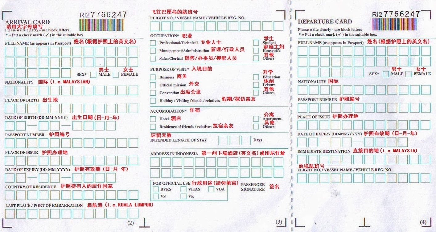 在飞往巴厘岛的旅途中,有一件事是一定要做的(除非你是印尼藉),那就是填写出入境卡(Arrival and Departure Card)和海关申报卡(Custom Declaration Card)。