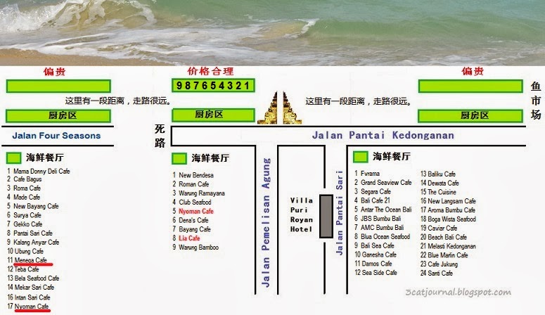 金巴兰有两家 Nyoman Cafe,分别位于 Pantai Jimbaran 及 Pantai Muaya(Jalan Four Seasons)。前者比较平民化,后者乃旅行社的选择。单看店家各有不同的Logo,两家应该分属不同的老板(图三)。