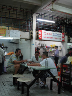 记忆中的早餐不外是干捞面、咖喱面或有着虾米和沙葛碎的猪肠粉, 而且面和配料是分开点的, 非常便宜. 一碗「两钱」的面条, 再加上「一钱」的炸腐皮、酿豆付或鱼丸(有时喵仔三姨婆大发慈悲才可任选两块), 就是一份非常满足的一餐了.
