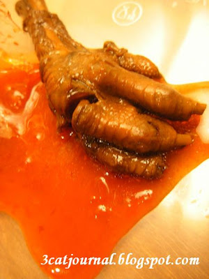 因为是走地鸡的关系, 鸡脚都很瘦, 很多稠稠的卤汁, 很香!