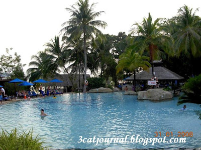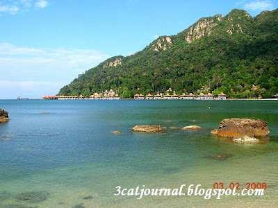 忘了告诉大家, 「成功海滩度假村」是一家充满热带雨林风情的五星级酒店, 离机场才20分钟车程. 马来西亚式的小木屋分布在森林中及沿海一带, 最奢华的有建在海上的度假屋(Water Chalet). 由于占地甚阔, 所以需耍川行车代步.