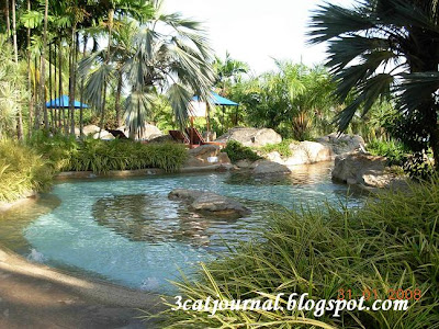 接着母子就去享受一下露天水力按摸池(Outdoor Jacuzzi), 可惜水力不够强, 不过瘾, 倒是看到一只大蜥蜴(Iguana), 在池边呆呆地吐着舌头, 看耒我们打扰了它的沐浴时光了.