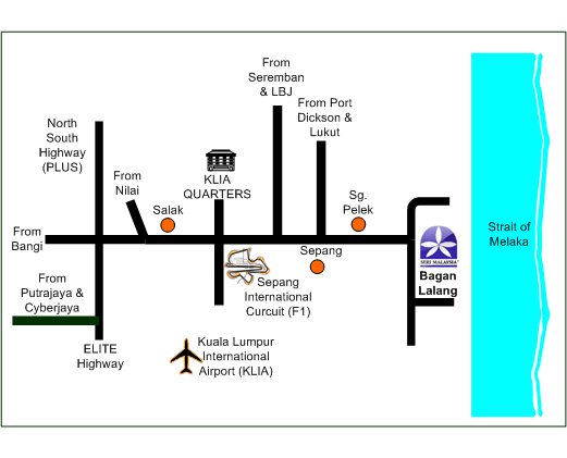 - 过了KLIA大道收费站,再沿着雪邦一级方程式国际赛车场的方向前往,从大道转左。