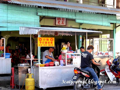 中午3点多,邦咯岛大街没什么好吃的,只看到一档“小强手打云吞面”。