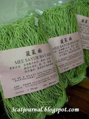 经过位于面档斜对面的陈金溢面家,被半手工制作,不含人造色素的菠菜面所吸引,忍不住买了几包作手信。