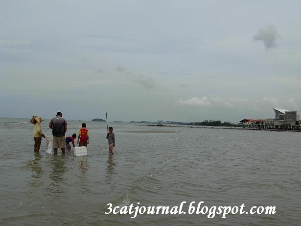 三只猫和慢姨姨在自家阳台享用了“久拉揸面食”和“悦兴海南鸡饭”后,就到附近的Riau沙滩走走。