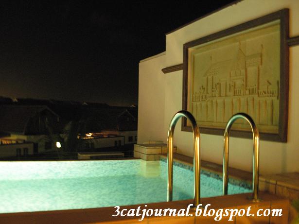 夜空下的泳池份外迷人,要不是下起毛毛雨,三只猫早就投入泳池,仰望星光点点,渡过一个既浪漫又惬意的夜晚。