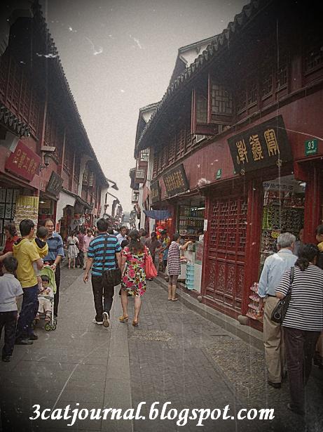 三只猫一行七人漫步于古镇之中。虽说七宝老街的面积不大,来来去去还不是那几条小街,但对于脚力不好的妈子来说,还是走得有点吃力。